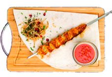 130 г • Шашлык из куриного филе, предварительно замаринованный в восточных специях. Подается с маринованным лучком, гранатом и зеленью.