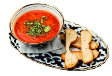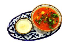 350 г • Насыщенный острый суп из телятины, риса, чеснока, ароматных восточных специй и кинзы.