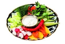 500 г • Блюдо из отборных овощей: томат, огурец, сладкий перец, молодой редис, сельдерей, острый перчик и ароматная зелень. Подается с чесночным соусом