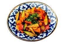 300 г • Обжаренные в воке аппетитные кусочки баранины с шампиньонами, томатами, сладким перцем, сельдереем, луком, чесночком и восточными специями. Блюдо посыпается ароматной зеленью.