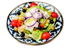 280 г • Вариация на темуу классического греческого салата: сыр Фета, томат черри, сладкий перец, огурец, салат айсберг и латук, оливки, маслины, красный лук, соус от шефа
