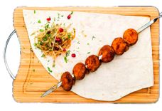 130 г • Шашлык из измельченного куриного мяса и репчатого лука. Подается с маринованным лучком, гранатом и зеленью.